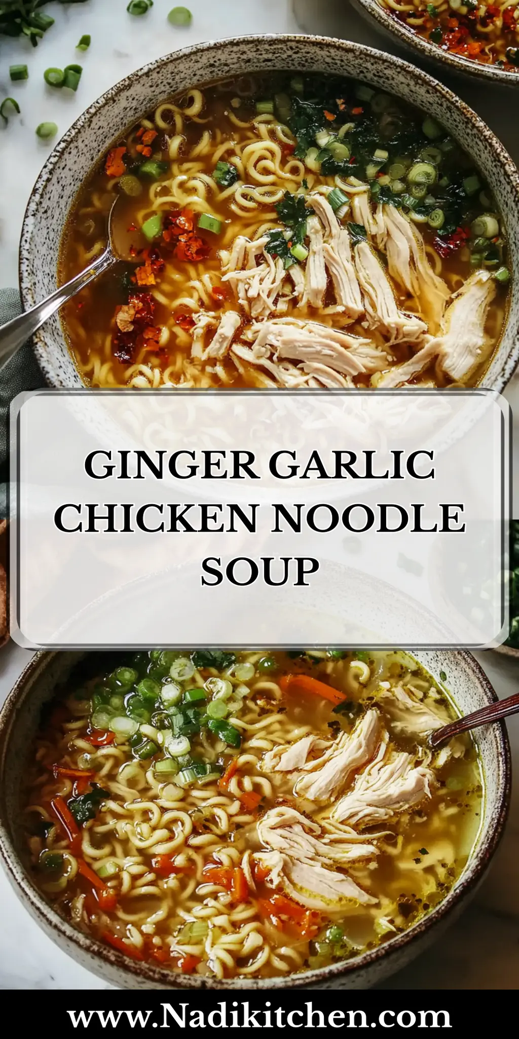 - This Ginger Garlic Chicken Noodle Soup is not only quick to prepare but also perfect for busy weeknights, taking just 50 minutes from start to finish.