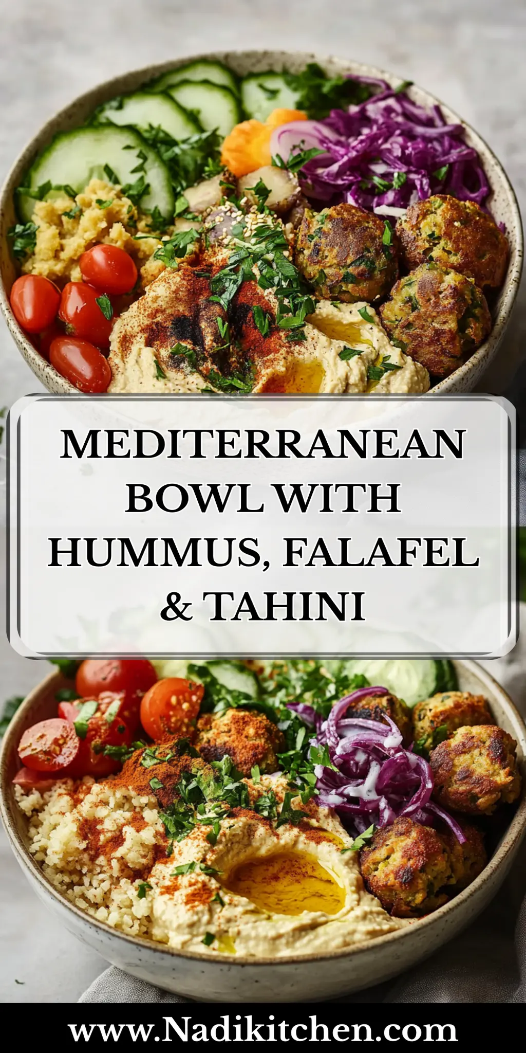 This Mediterranean Bowl with Hummus, Falafel & Tahini is a delightful mix of flavors and textures, perfect for a satisfying meal.