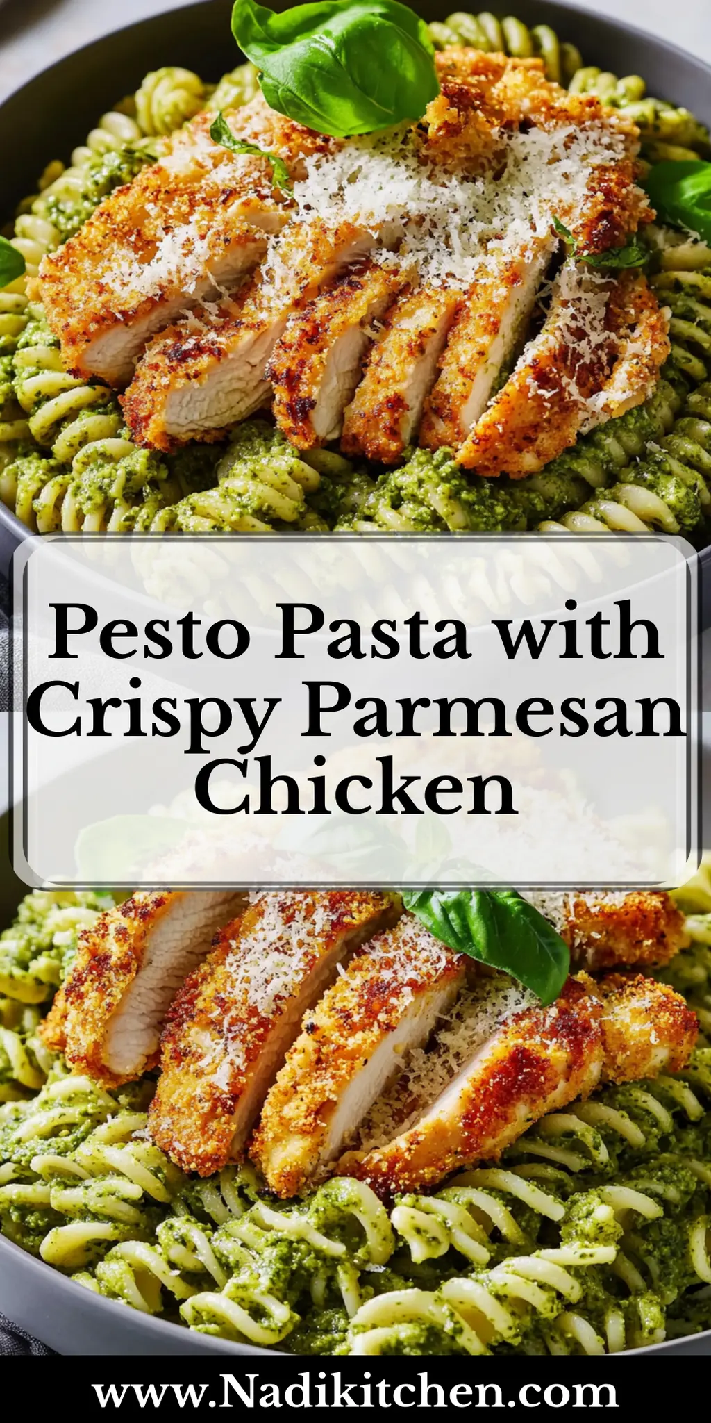 Serve: Plate your pesto pasta and generously top it with the sliced crispy parmesan chicken. Enjoy the delightful crunch with every bite!