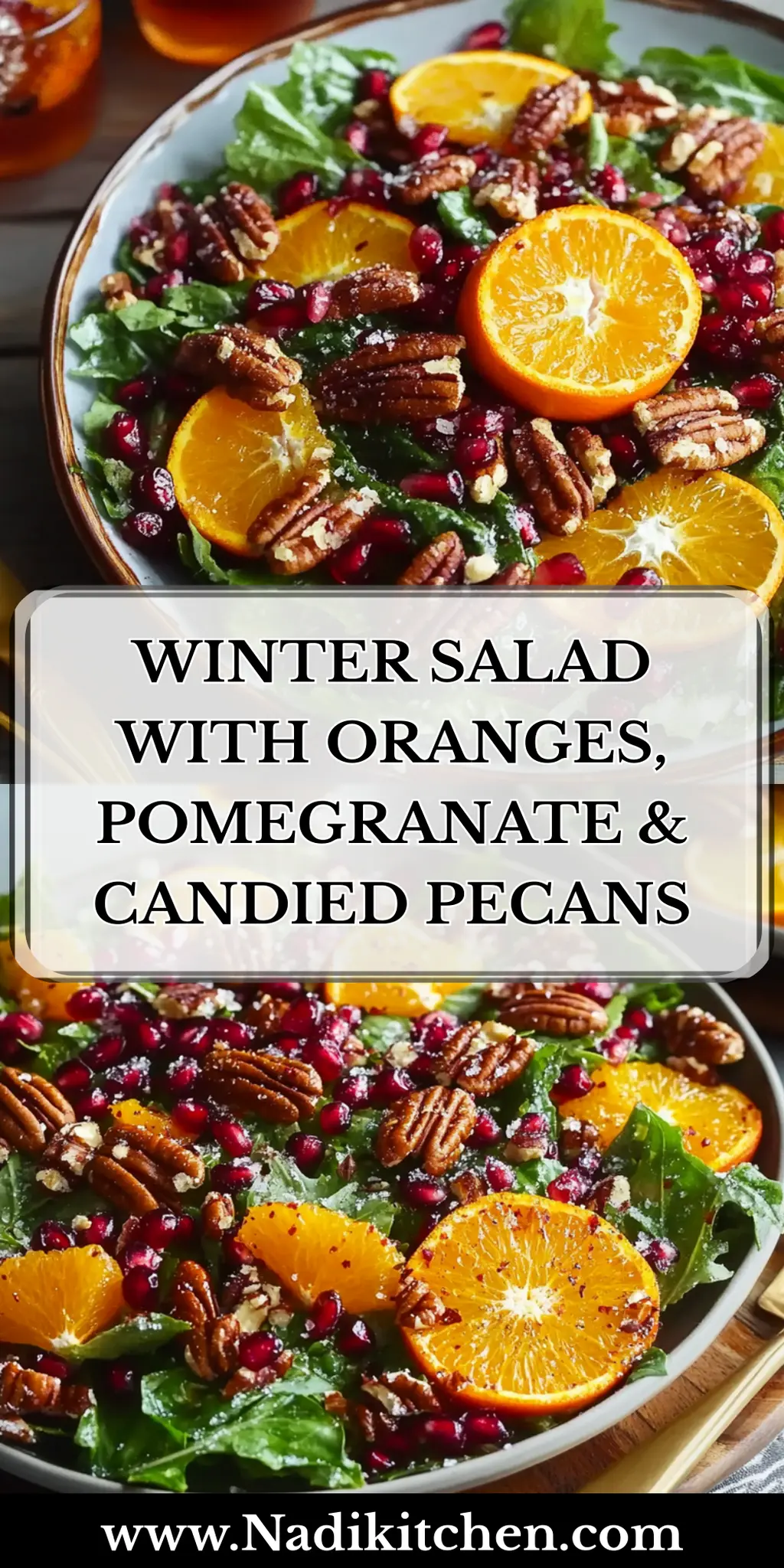 Winter Salad with Oranges, Pomegranate & Candied Pecans